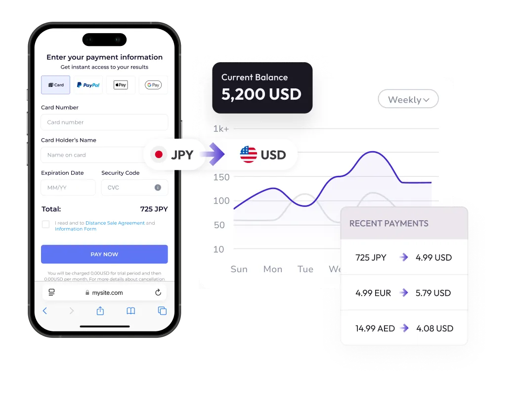 Let your customers pay in their local currency — while you get paid in yours. Zotlo handles automatic FX conversions, ensuring frictionless checkout and consistent revenue.