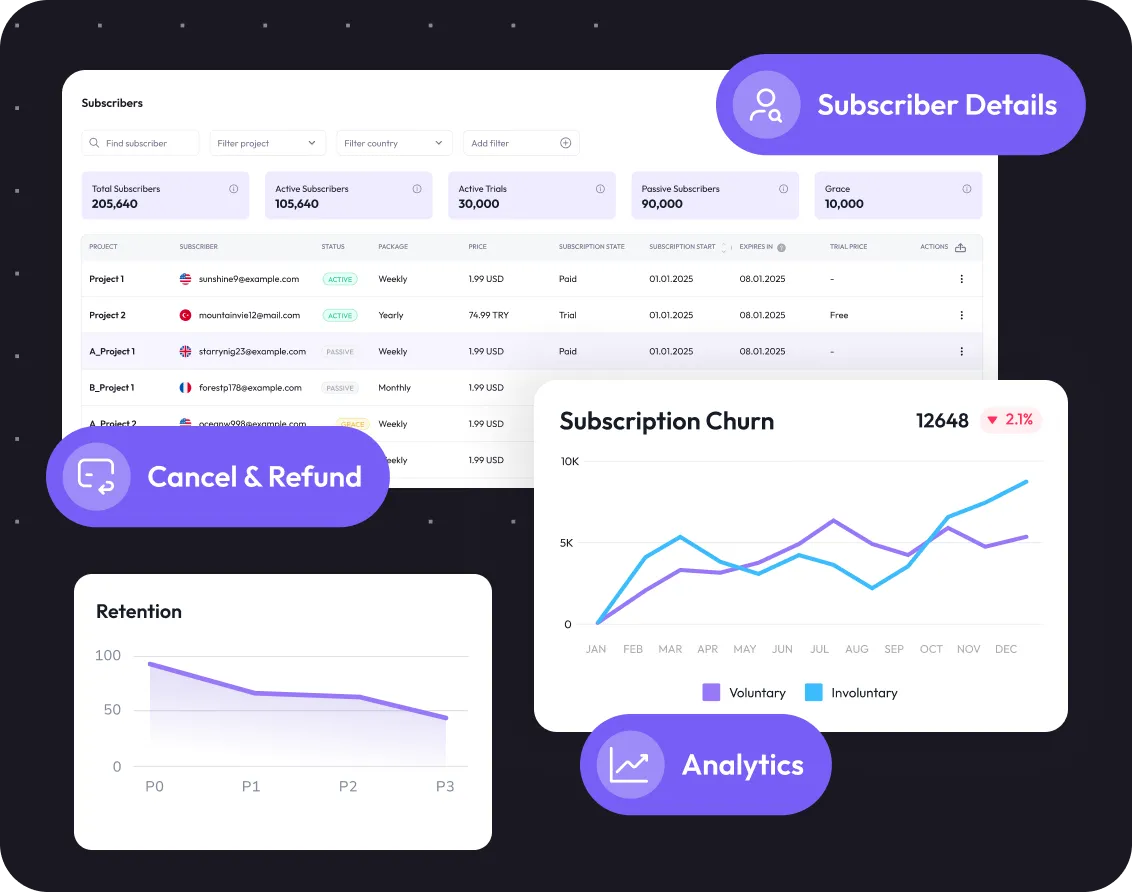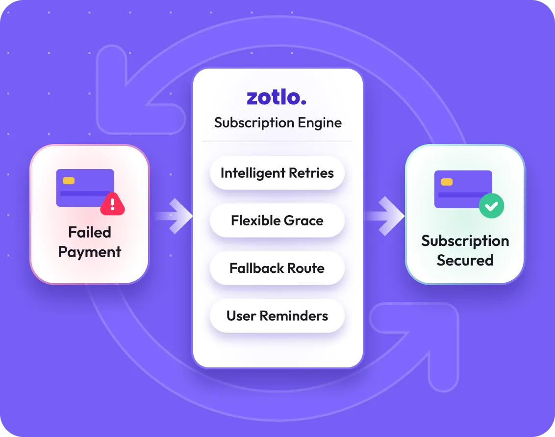 Even the best subscribers run into payment issues. Zotlo automatically handles failed renewals with smart retry strategies.